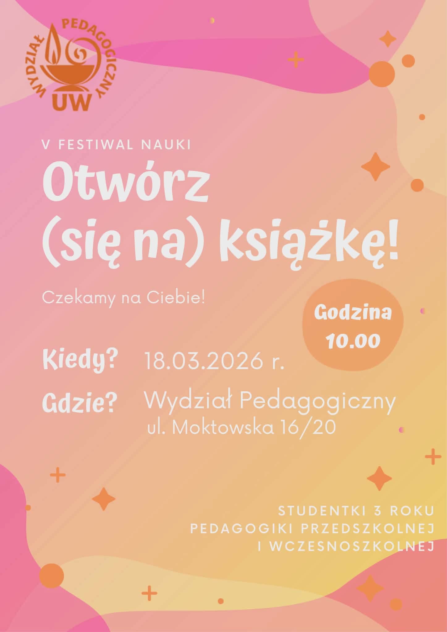 serdecznie zapraszamy na V FESTIWAL NAUKI „OTWÓRZ (SIĘ NA) KSIĄŻKĘ”,